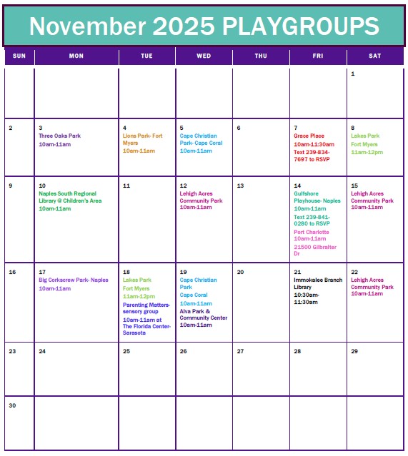 Please join us at this playgroup. For more information please call 239-910-5199 or email nelsycrowell@hpcswf.com or lizzethnavarro@hpcswf.com