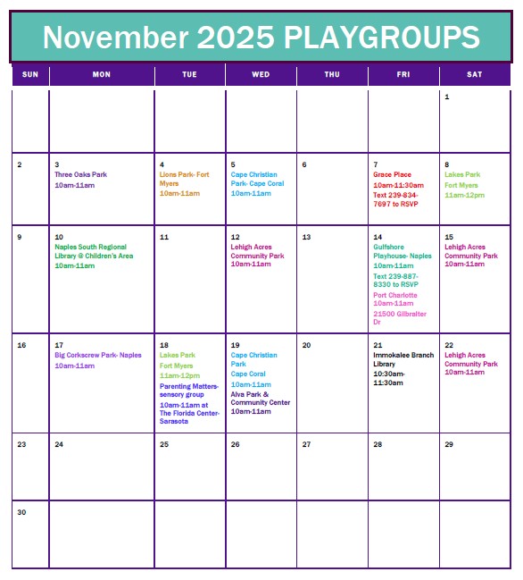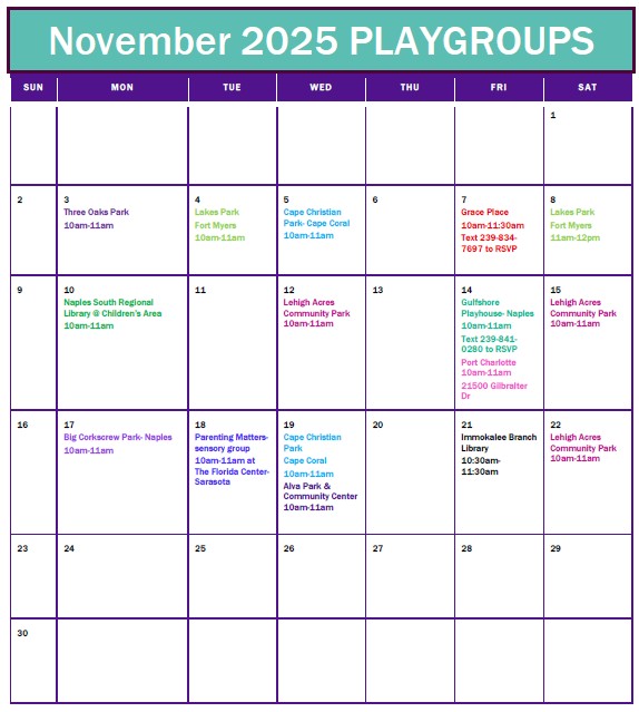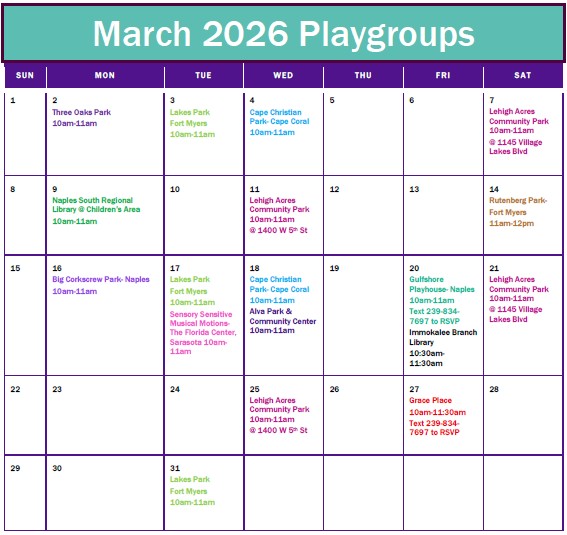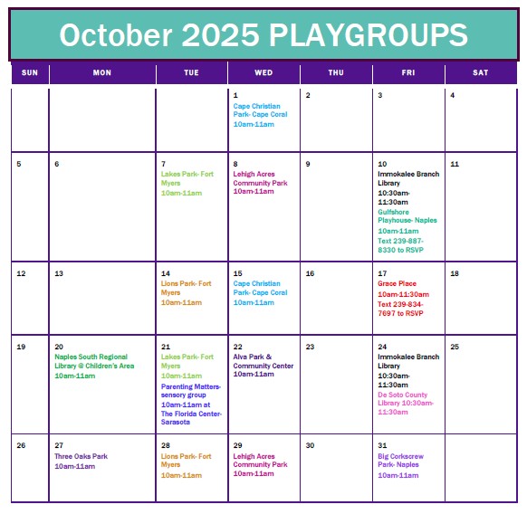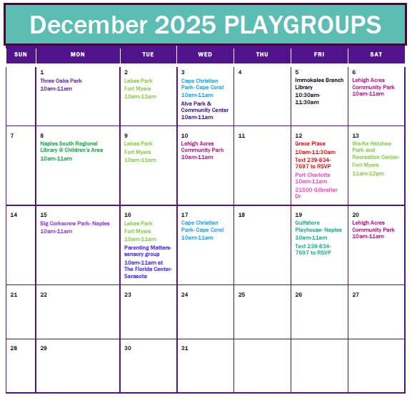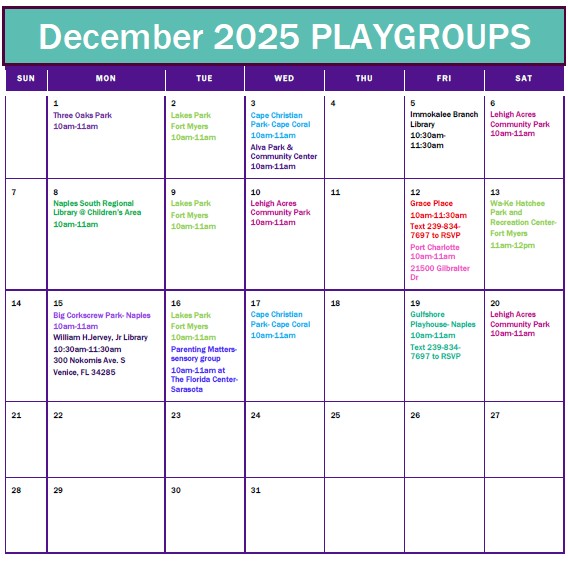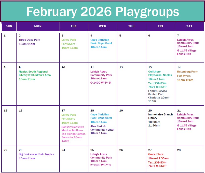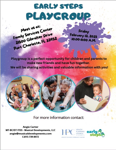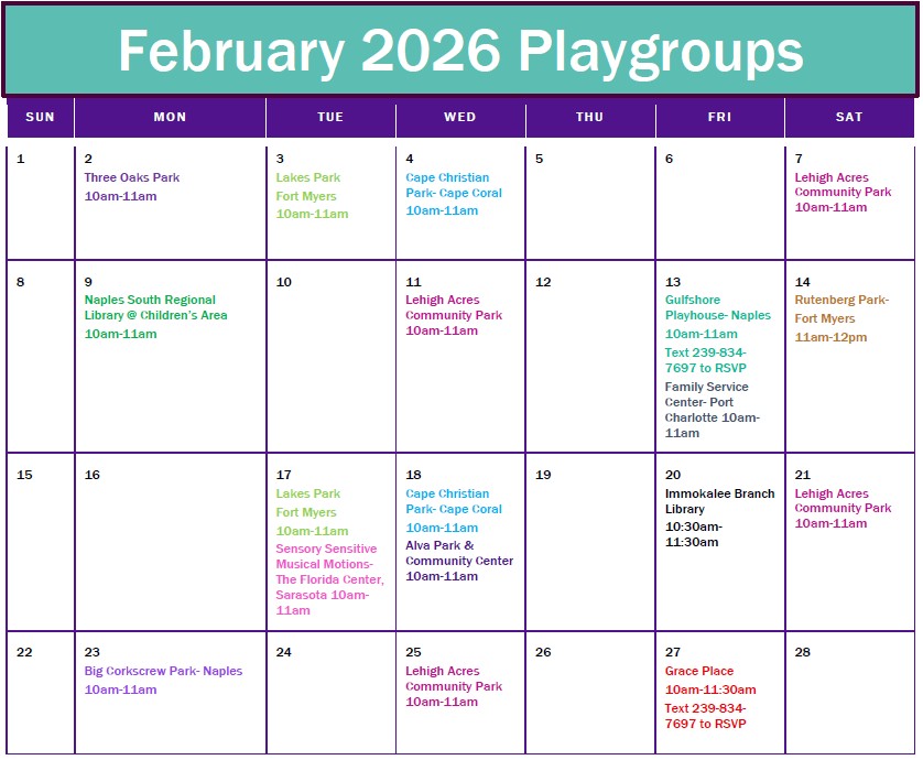 Please join us at this playgroup. For more information please call 239-910-5199 or email nelsycrowell@hpcswf.com or lizzethnavarro@hpcswf.com
